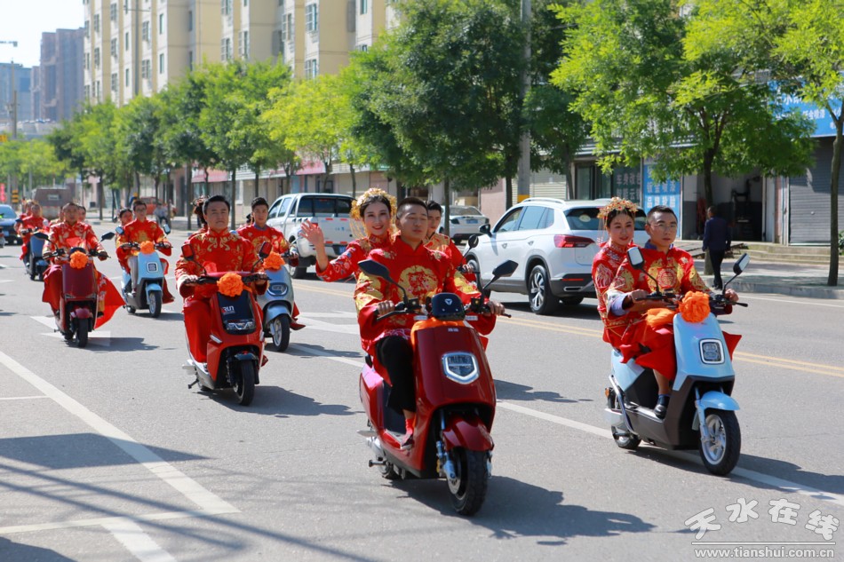 上午9:00,14對(duì)新人騎行電動(dòng)車,從軒轅湖公向東,經(jīng)軒轅大道繞行東部新城區(qū)至軒轅湖公園,見證甜蜜愛情,共同倡導(dǎo)婚俗文明新風(fēng)尚。