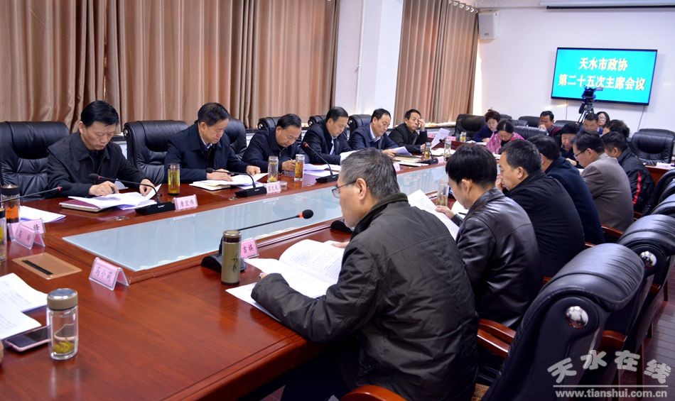 12月18日,天水市政協(xié)黨組副書記、副主席王振宇主持召開市政協(xié)七屆二十五次主席會議。市政協(xié)副主席馬百齡、蘇定武、郭明興、唐宏偉、屈光平,市政協(xié)秘書長劉鋒出席會議。