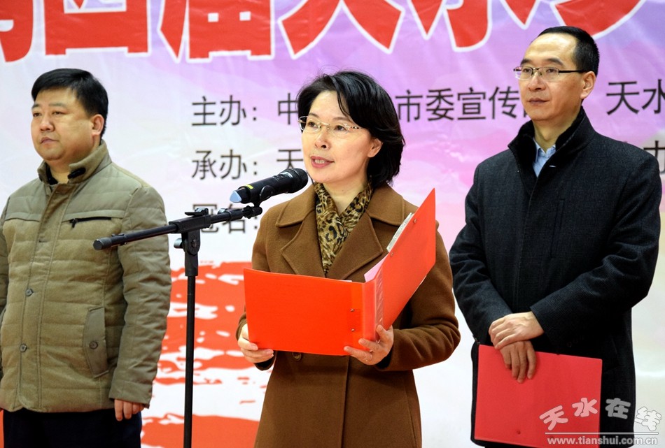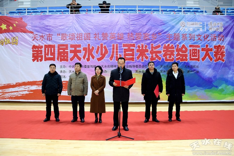 (天水市委宣傳部常務(wù)副部長楊清明講話并宣布“第四屆天水少兒百米長卷繪畫大賽”比賽開始)