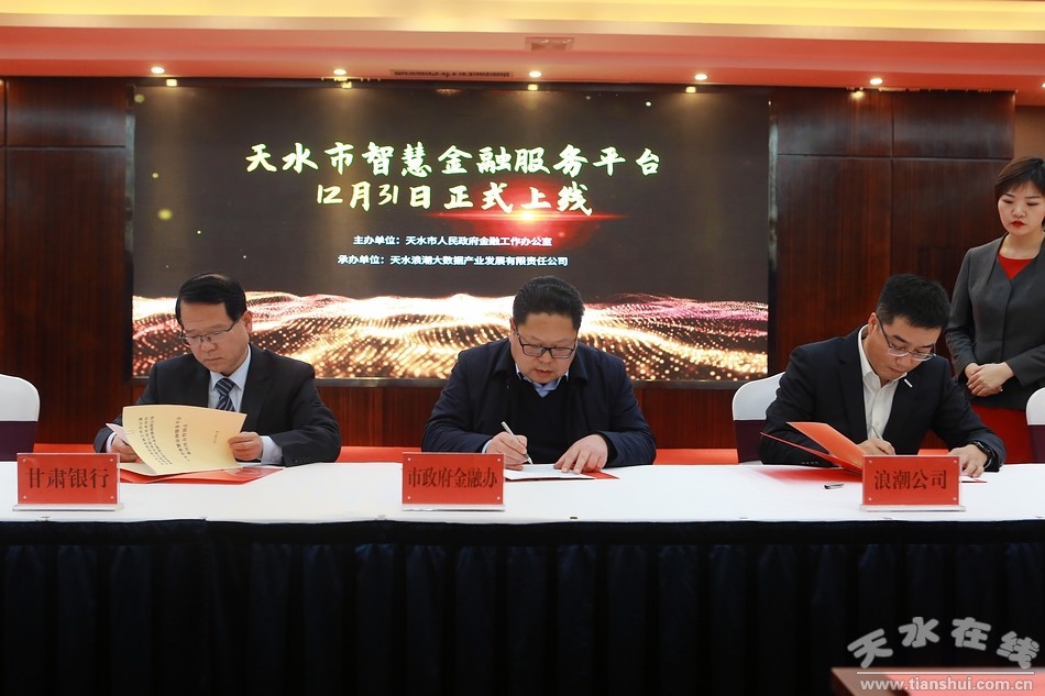 (市政府金融辦、甘肅銀行天水分行、浪潮集團(tuán)簽訂天水市智慧金融服務(wù)平臺(tái)線上產(chǎn)品合作協(xié)議。)