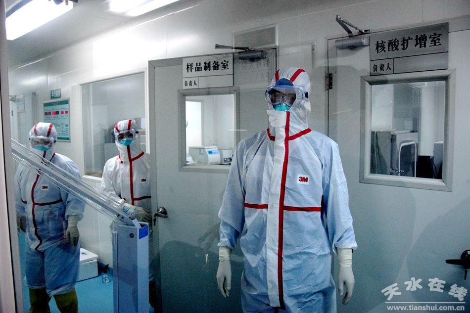 在此次戰(zhàn)“疫”中,天水市疾控中心實(shí)驗(yàn)室承擔(dān)著全市所有采集樣本的核酸檢測(cè)工作。目前實(shí)驗(yàn)室21人排了6班,接樣本的人一人一班12小時(shí),人休班不休,其他人實(shí)驗(yàn)室連軸轉(zhuǎn),拿到樣本連夜檢測(cè)。