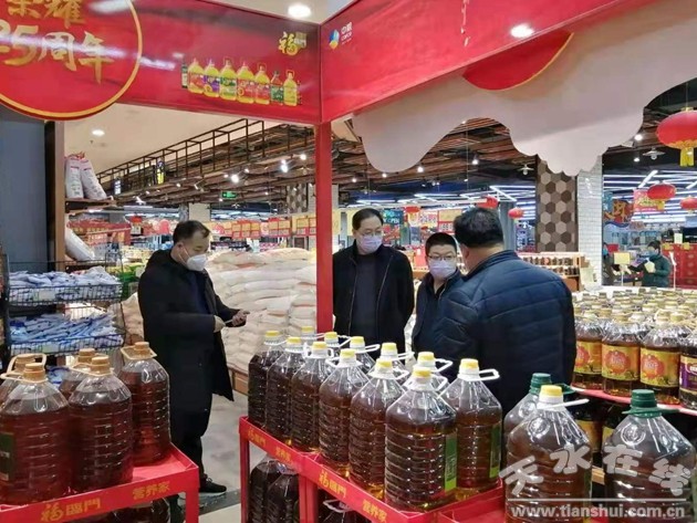 2月4日,天水市商務(wù)局黨組副書記李曉東、黨組成員石劭帶隊與秦州區(qū)商務(wù)局負責同志一道檢查了瀛池果菜批發(fā)市場、蘭天超市、五洲購物廣場、嘉佰樂生活超市等企業(yè)生活必需品保供和疫情防控工作。