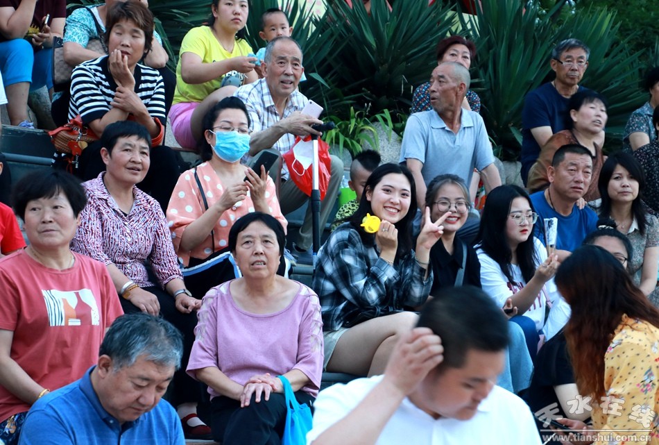 (現(xiàn)場觀眾紛紛和天水在線主播、大地灣女神舞者萌萌合影留念。)