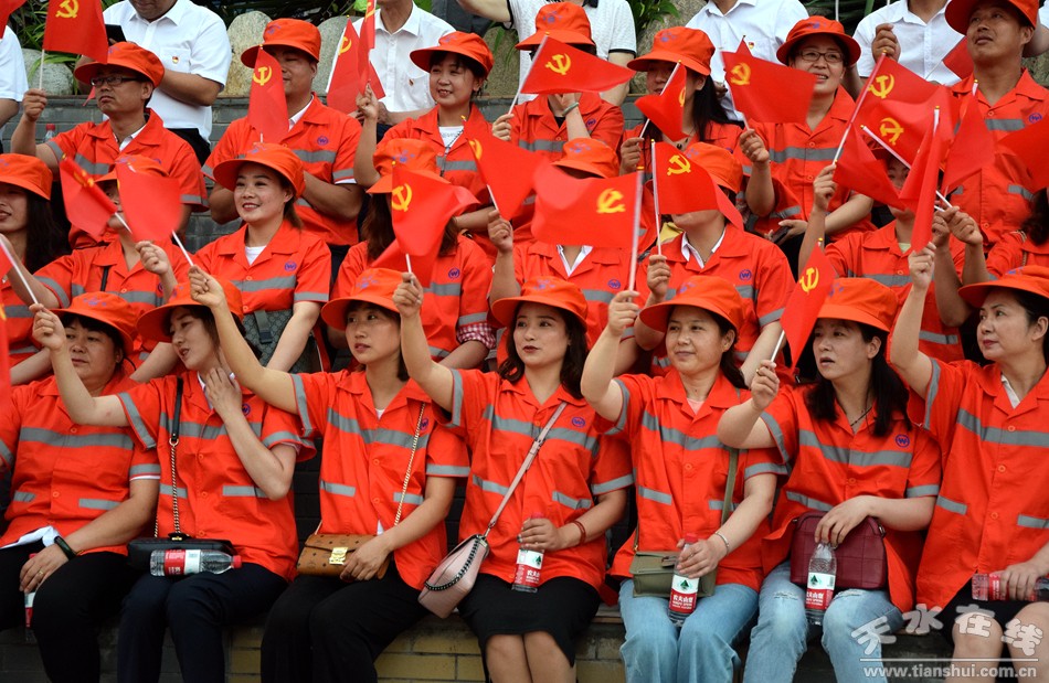 在中國共產(chǎn)黨99周年華誕之際,由天水在線策劃,秦州區(qū)城鄉(xiāng)環(huán)衛(wèi)中心黨委、天水市職工合唱團黨支部、天水在線黨支部聯(lián)合舉行的慶祝建黨99周年《沒有共產(chǎn)黨就沒有新中國》職工大合唱,6月29日晚,在天水湖音樂噴泉濃情上演,上百名黨員和數(shù)千群眾觀看了演出。