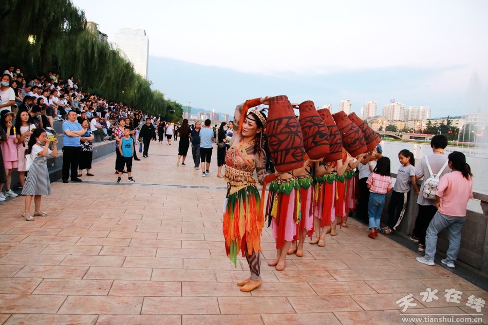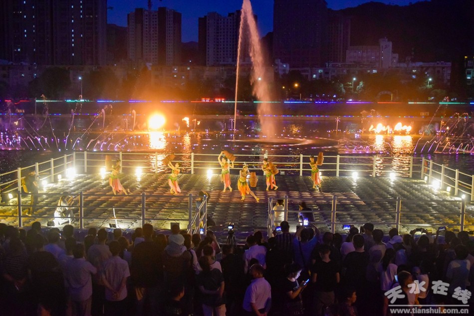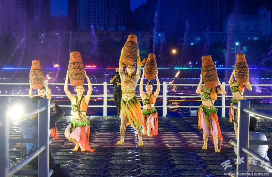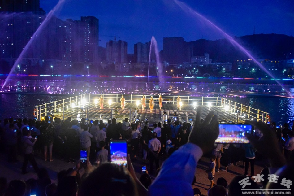 8月1日晚,由天水湖管理處、天水在線和天水藝術學校根據(jù)“大地灣女神”舞蹈和“大美天水”音樂噴泉特效專門設計并聯(lián)合推出的“大美天水+大地灣女神”音樂噴泉第九場演出在天水湖激情上演,這也是群舞版“大美天水+大地灣女神”音樂噴泉首次演出。數(shù)千群眾現(xiàn)場觀看了演出,上萬網友通過天水在線抖音直播間觀看了演出。