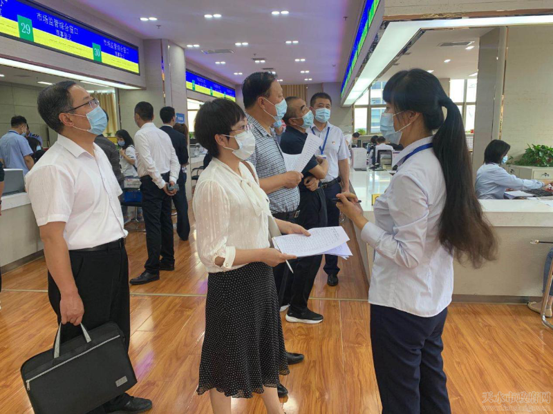 當(dāng)天下午,評(píng)估組一行在市政府政務(wù)大廳進(jìn)行了實(shí)地評(píng)估,現(xiàn)場(chǎng)查看“多證合一”工作流程、“甘肅省部門協(xié)同監(jiān)管平臺(tái)”推送數(shù)據(jù)等工作情況,與相關(guān)涉企部門工作人員和前來辦事的企業(yè)、群眾進(jìn)行了業(yè)務(wù)交流,詳細(xì)了解了營業(yè)執(zhí)照辦理流程和辦件體驗(yàn)。