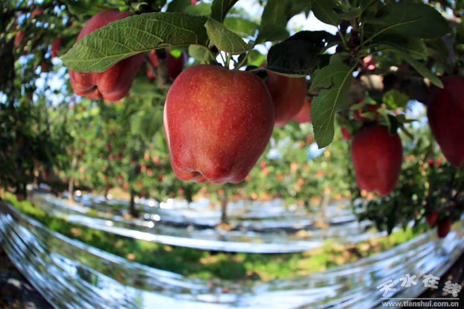 南宋詩人劉克莊《鶯梭》詩敘織布曰“擲柳遷喬太有情,交交時(shí)作弄機(jī)聲。洛陽三月花如錦,多少工夫值得成!被ㄅLO果天生地長,非人力所能及者,然而我們收獲的花牛,卻蘊(yùn)含了果農(nóng)辛勤而科學(xué)的勞動。先前觀念里,判斷一棵果樹好還是不好,最重要的標(biāo)準(zhǔn),就是結(jié)子“稠不稠”,“果實(shí)累累壓彎了枝頭”就是一派豐收的喜人景象。今天的花牛卻恰恰不能這樣。蘋果花開,五朵一簇。第一道工序,就是疏花。手工摘去四朵,僅余一朵,減少數(shù)量,保證質(zhì)量。果實(shí)結(jié)出,又需疏果,果與果之間,留出足夠空間,促其成長而壯大。至夏季,每顆蘋果都人工一個(gè)個(gè)套袋,給幼小的蘋果,穿上防護(hù)服。烈日當(dāng)空,枝繁葉茂,此事辛苦,自不待言。然功用亦大,最重要的,就是防止農(nóng)藥噴到果實(shí),確保綠色無污染。到果園,見碩果垂垂的樹下,長長地鋪著亮銀色的膜,但不是常見的塑料薄膜。我不解,果園主人答,是反光膜,陽光反射,照到下垂的蘋果頭部,保證光照均勻,每個(gè)花牛蘋果,都紅得秋深似海,紅得像天水人的心一樣扎實(shí)。
