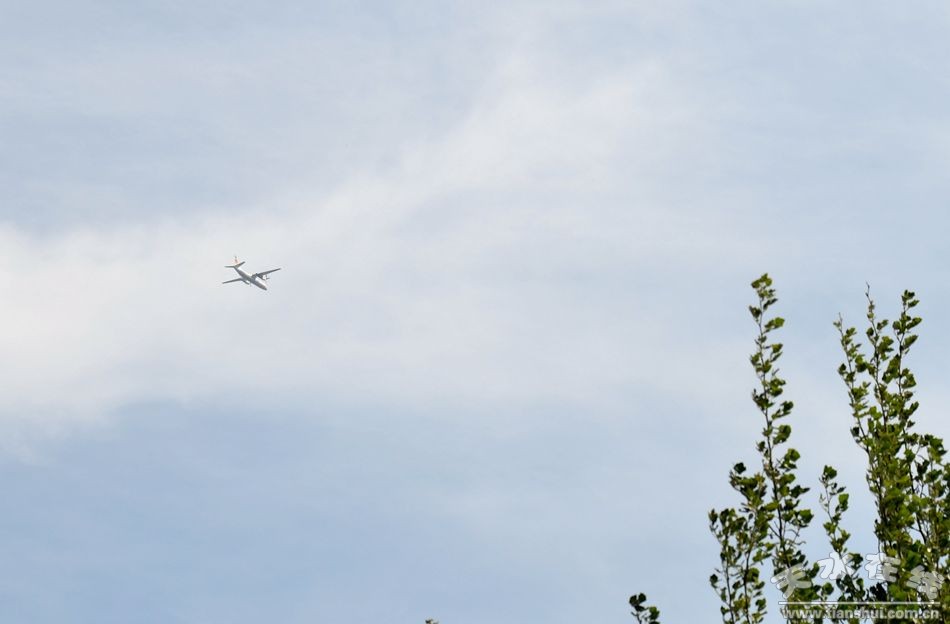 (一架飛機(jī)從中梁上空飛過 天水在線攝于2015年4月27日)