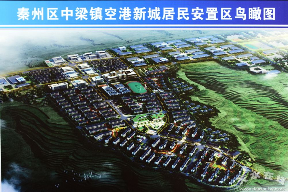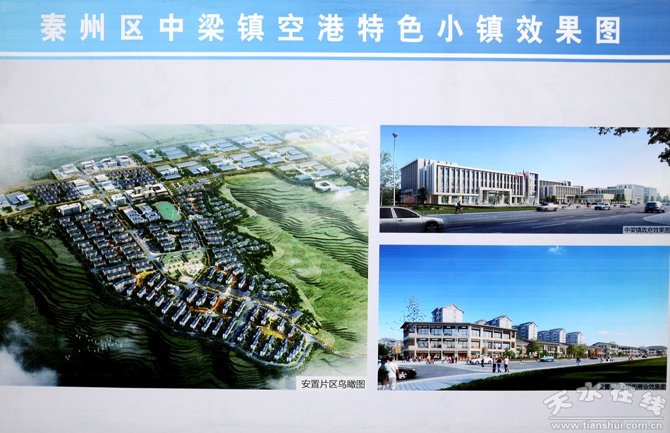 辛棄疾詞云“山下千林都覺俗,山上一枝看不足”,何況山上千林,春花夏果呢?但緊鄰城區(qū)的地理位置,卻使中梁不可能永遠(yuǎn)做婀娜的都市田園,城市化必定會席卷于斯,而且起點(diǎn)頗高。中梁地形,一山一梁兩面坡,仿佛一架欲騰空的飛機(jī),天水新機(jī)場,正選址這里。與干部的交流中,深深體會到大家對新機(jī)場建設(shè)的渴望。在鎮(zhèn)政府辦公室里,指著腳下的地面說,這就是機(jī)場跑道區(qū),似乎飛機(jī)正加速度向天際飛去,掩蓋不住大發(fā)展的渴望。一片集中居住區(qū)已平整土地完畢,匯現(xiàn)代化居住、物流、科創(chuàng)、商貿(mào)于一體的空港新城,將輝煌誕生——天河注水,龍躍于天。