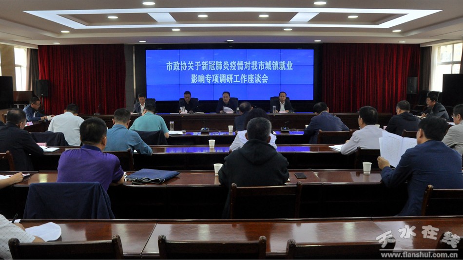 9月15日,天水市政協(xié)召開(kāi)關(guān)于新冠肺炎疫情對(duì)我市城鎮(zhèn)就業(yè)影響專(zhuān)項(xiàng)調(diào)研工作座談會(huì),聽(tīng)取市人社局、市工信委等市直相關(guān)部門(mén)新冠肺炎疫情對(duì)我市城鎮(zhèn)就業(yè)影響情況匯報(bào)。會(huì)議由市政協(xié)副主席郭明興主持。
