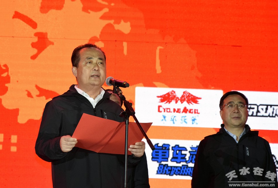 王軍在活動開幕式上講話,他說,2020中國西部自行車盛典暨第八屆“麥積山杯”全國山地自行車邀請賽及系列活動的舉辦,是我市全面貫徹落實(shí)中央和省上關(guān)于“促消費(fèi)、擴(kuò)內(nèi)需、穩(wěn)增長”的部署要求,認(rèn)真做好“六穩(wěn)”工作、落實(shí)“六!比蝿(wù)的重要舉措,對于營造喜慶祥和的節(jié)日氛圍,豐富廣大群眾的精神文化生活,助力全面建成小康社會和“十三五”規(guī)劃收官具有重要意義。希望麥積區(qū)和市直有關(guān)部門周密組織、精心服務(wù),全力做好服務(wù)保障工作,努力把自行車賽等系列活動辦出特色、辦出水平、辦出成效。他同時希望全體運(yùn)動員充分發(fā)揚(yáng)“更快、更高、更強(qiáng)”的體育精神,團(tuán)結(jié)協(xié)作、奮力拼搏,展示良好的競技水平和高尚的道德風(fēng)尚,在比賽中再創(chuàng)佳績。也希望參賽運(yùn)動員在賽事之余,更多地走進(jìn)天水、感知天水、了解天水,體驗(yàn)天水魅力、領(lǐng)略天水風(fēng)情,在天水度過一段美好難忘的時光。