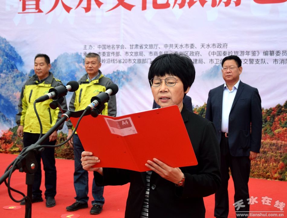 汪小娟在致辭中首先代表市委、市政府對中國地名學會、省文旅廳、秦嶺沿線5省20市文旅部門領導和采風自駕團的到來表示歡迎,并介紹了天水市市情。她說,近年來,在省委、省政府的正確領導和省文旅廳的大力支持下,我市緊緊圍繞“文化旅游強市”戰(zhàn)略目標,積極培育打造文化旅游首位產(chǎn)業(yè),以重大文旅項目招商為抓手,以深化文化旅游供給側結構性改革為重點,著力補短板、強弱項、提質量、促轉型,全市文化旅游業(yè)實現(xiàn)了規(guī)模和速度雙增長、質量和效益雙提升,為促進天水經(jīng)濟社會高質量發(fā)展做出了積極貢獻。當前,我市文化旅游業(yè)正處在疫后加速振興的重要階段。我們將以本次活動舉辦為契機,認真學習兄弟市州的好經(jīng)驗、好做法,秉持“游客至上、服務至誠”理念,以市場需求和游客需要為導向,不斷開發(fā)新產(chǎn)品、拓展新市場、培育新品牌、打造新環(huán)境,讓文化旅游發(fā)展成果惠及更多游客和市民,努力把天水建成西部一流文化旅游目的地城市而努力奮斗。她要求,全市各級、各部門、單位要緊緊圍繞“促消費、擴內需”要求,堅持市縣協(xié)同、政企聯(lián)動,精心籌劃、周密安排、緊密配合,高標準、高水平、高質量辦好天水文化旅游藝術節(jié),為廣大人民群眾奉上一道精彩、恢弘、大氣、難忘的藝術盛宴。