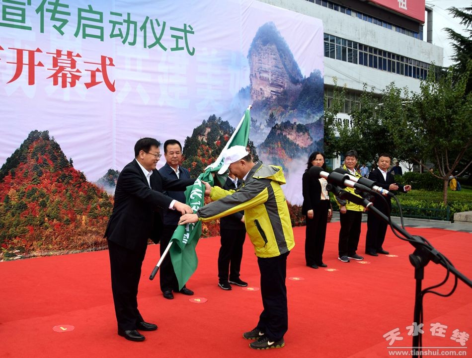 9月27日上午,世界旅游日“丈量大秦嶺”主題宣傳啟動儀式暨天水文化旅游藝術節(jié)開幕式在天水市秦州區(qū)龍城廣場隆重舉行。中國地名學會副會長兼秘書長王殿彬講話,甘肅省文旅廳二級巡視員王春生授旗,天水市委常委、宣傳部部長張建杰宣布藝術節(jié)開幕,市政府副市長汪小娟致辭,西北旅游協(xié)作區(qū)秘書長王曉民介紹“丈量大秦嶺”主題宣傳活動,河南省三門峽市文化廣電和旅游局三級調研員楊素蕓代表大秦嶺沿線5省20市文旅部門宣讀倡議書,市文旅局副局長劉宗林介紹天水文化旅游藝術節(jié)總體情況。開幕式由市委副秘書長高麗主持。