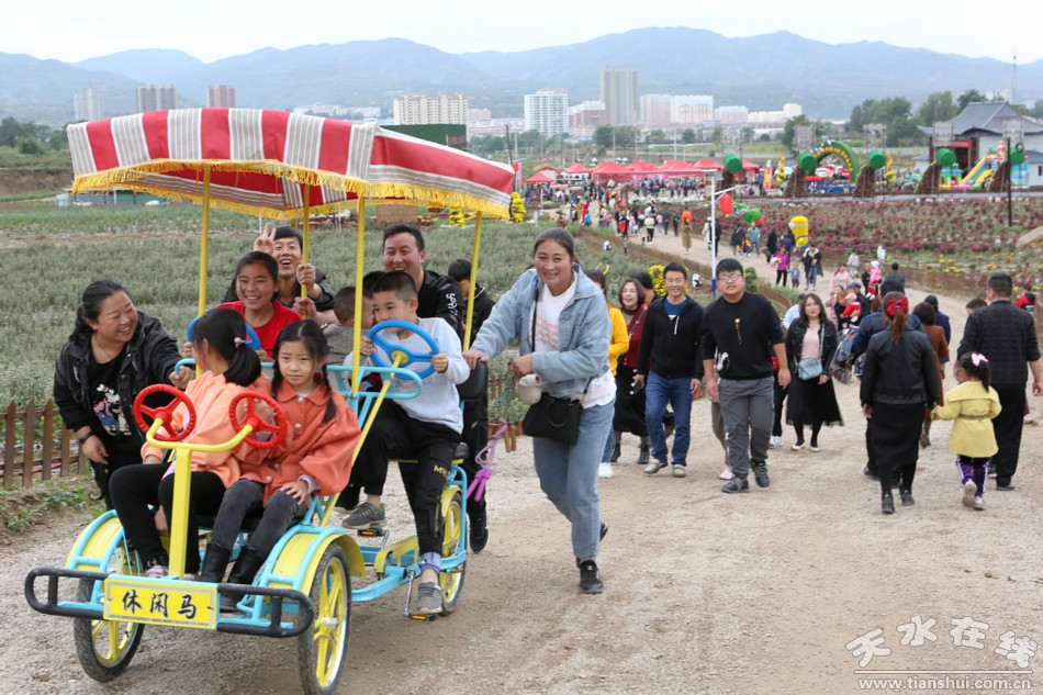 10月3日,天水在線在清水千畝菊花觀賞園看到,進(jìn)入園區(qū)道路兩邊和停車場(chǎng)全部停滿了自駕車輛,園區(qū)內(nèi)游人如織。