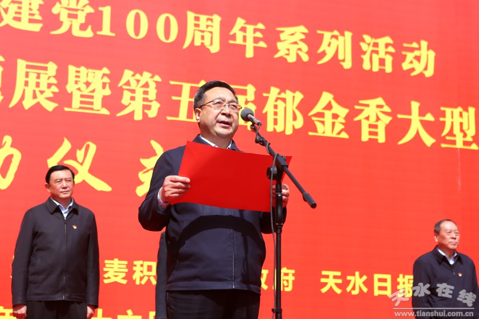 (市政協(xié)主席趙衛(wèi)東宣布:天水市麥積區(qū)黨史學(xué)習(xí)教育黨的歷史主題展暨第五屆郁金香花卉展啟動(dòng)。)