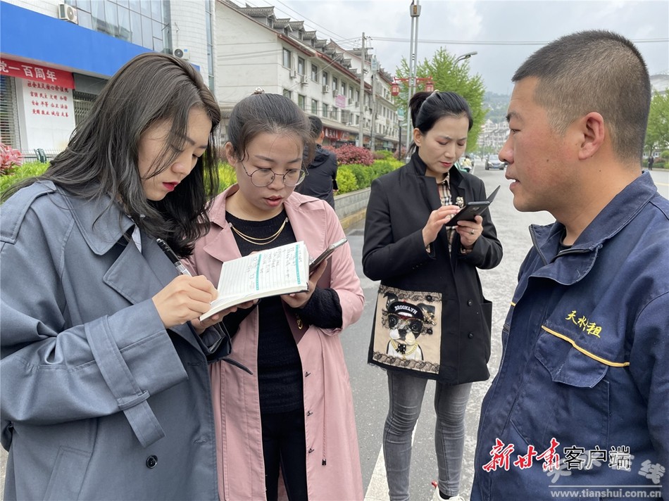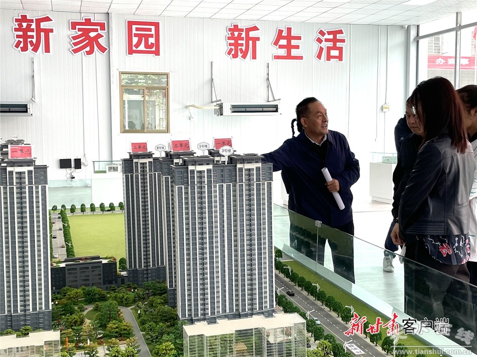 天水市城市更新服務(wù)中心副主任劉峰(左)介紹相關(guān)情況
