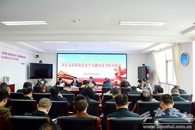 為推動(dòng)黨史學(xué)習(xí)教育走深走實(shí),引導(dǎo)黨員干部學(xué)黨史、悟思想、辦實(shí)事、開新局。4月26日上午,天水市文化和旅游局黨組舉辦市直文旅系統(tǒng)黨史學(xué)習(xí)教育讀書班開班儀式,局黨組成員、局機(jī)關(guān)縣處級(jí)干部,局屬各單位黨支部書記、班子成員、黨辦主任,局機(jī)關(guān)各科室負(fù)責(zé)人等70余人參加學(xué)習(xí)。