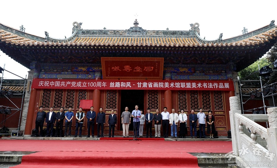 6月14日上午,由甘肅省文化和旅游廳、甘肅畫院、天水市文化和旅游局主辦,甘肅省畫院美術(shù)館聯(lián)盟、天水美術(shù)館(天水書畫院)承辦并由天水市文化館等多家單位協(xié)辦的慶祝中國共產(chǎn)黨成立100周年——‘絲路和風(fēng)’甘肅省畫院美術(shù)館聯(lián)盟美術(shù)書法作品展在天水美術(shù)館隆重開展。