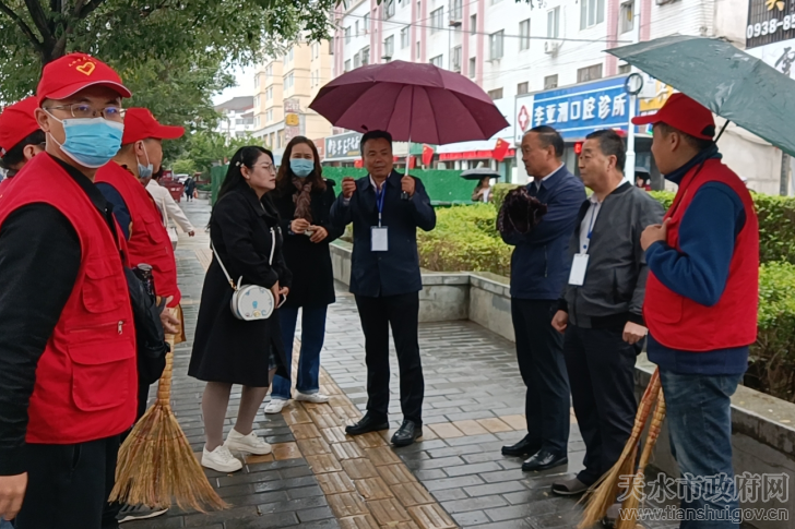 在成紀大道西路“包街”責任路段,志愿服務人員手拿掃把、簸箕等工具,認真對馬路、街道進行清掃,保持路面干凈整潔;在學生上下學高峰期,協(xié)助交警積極勸導學生遵守交通規(guī)則;整理人行道亂停亂放的電瓶車、摩托車,保障道路通暢;同時向沿街商戶和過往群眾講解創(chuàng)城知識,號召廣大群眾積極參與到創(chuàng)城活動中,以實際行動支持我市全國文明城市創(chuàng)建工作。