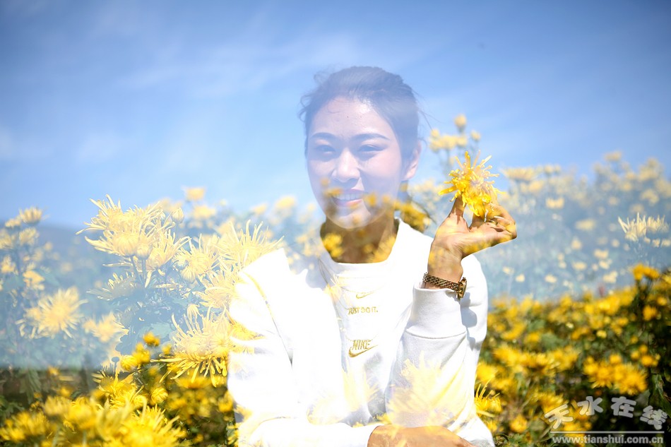 10月21日,天水在線主播萌萌一行來(lái)到清水縣文旅農(nóng)康融合發(fā)展示范基地看到,這里的二百多畝金絲皇菊已經(jīng)花開成海,開始采收。