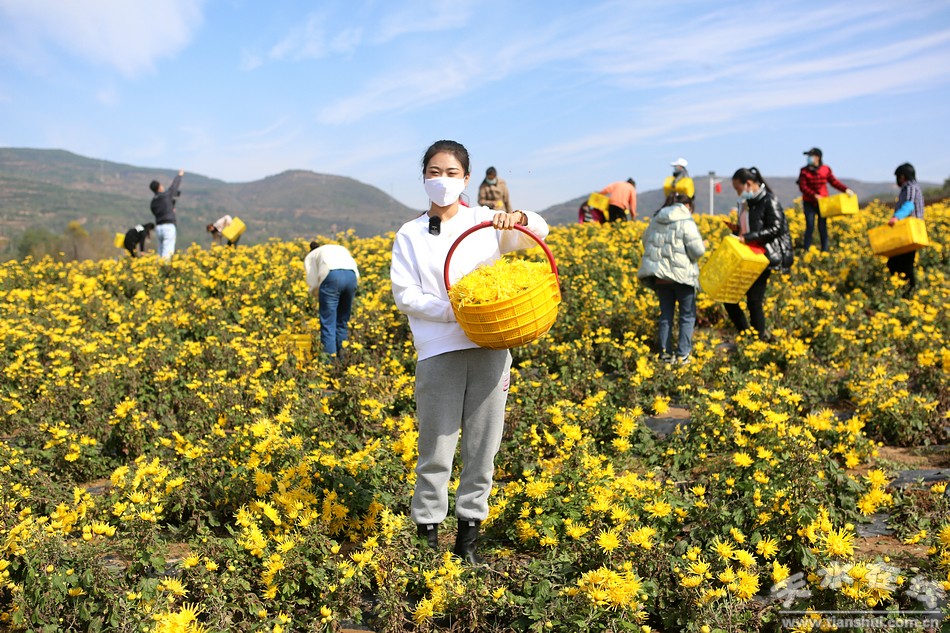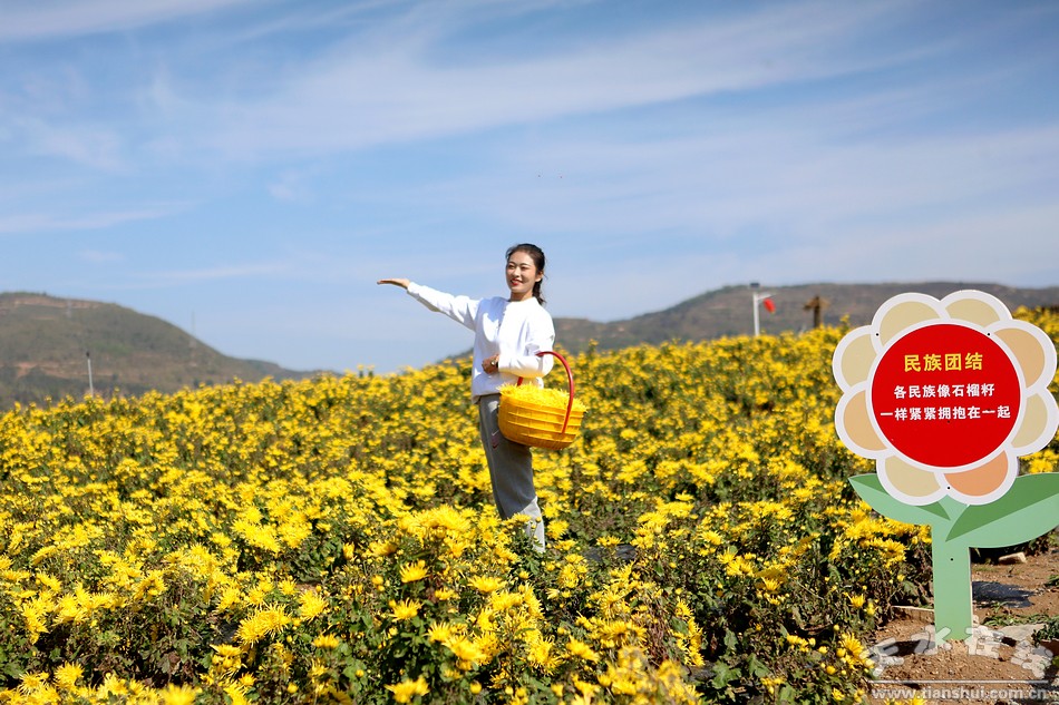(清水縣文旅農(nóng)康融合發(fā)展示范基地的金絲皇菊開始采收)