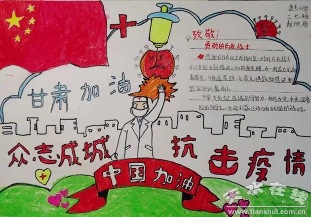 少先隊(duì)員們通過多種途徑了解疫情防控知識,一幅幅生動的繪畫、手抄報,表達(dá)了對一線抗疫人員的致敬,傳遞抗疫正能量。讓我們堅(jiān)定信念,萬眾一心,攜手并肩,眾志成城,共同戰(zhàn)勝疫情!