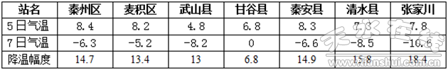 三、降溫幅度統(tǒng)計表(單位:℃)