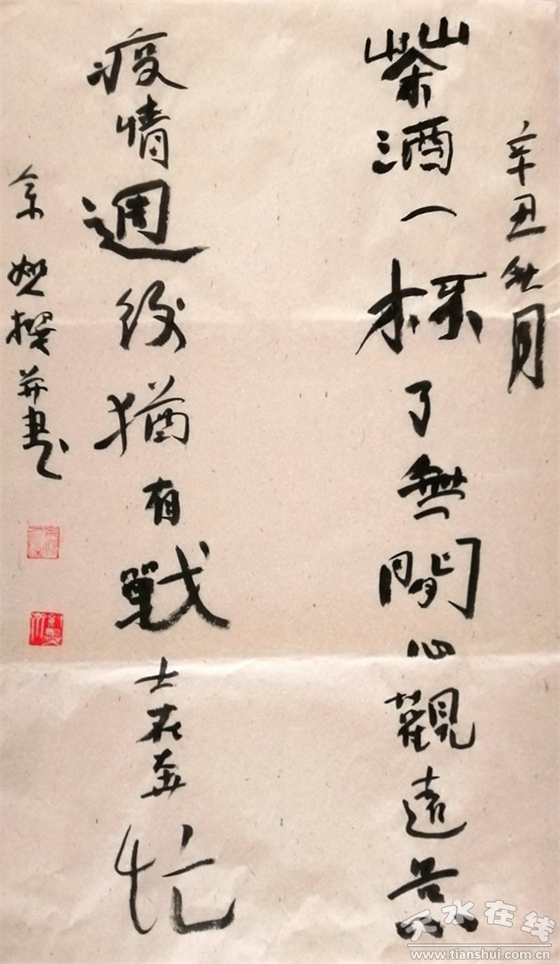 文藝是時代前進(jìn)的號角。面對一場決不能懈怠的疫情防控阻擊戰(zhàn),天水市文藝工作者在市文化和旅游局的倡議組織下迅速集結(jié),用一曲曲溫暖感人的音樂、一段段生動優(yōu)美的舞蹈、一幅幅大愛無疆的丹青、一首首振奮人心的詩詞吹響了文藝的號角,以百花齊放的人民文藝致敬抗疫英雄、宣傳防控知識、傳遞人間大愛,展現(xiàn)著天水人民共同抗疫的信心和決心!