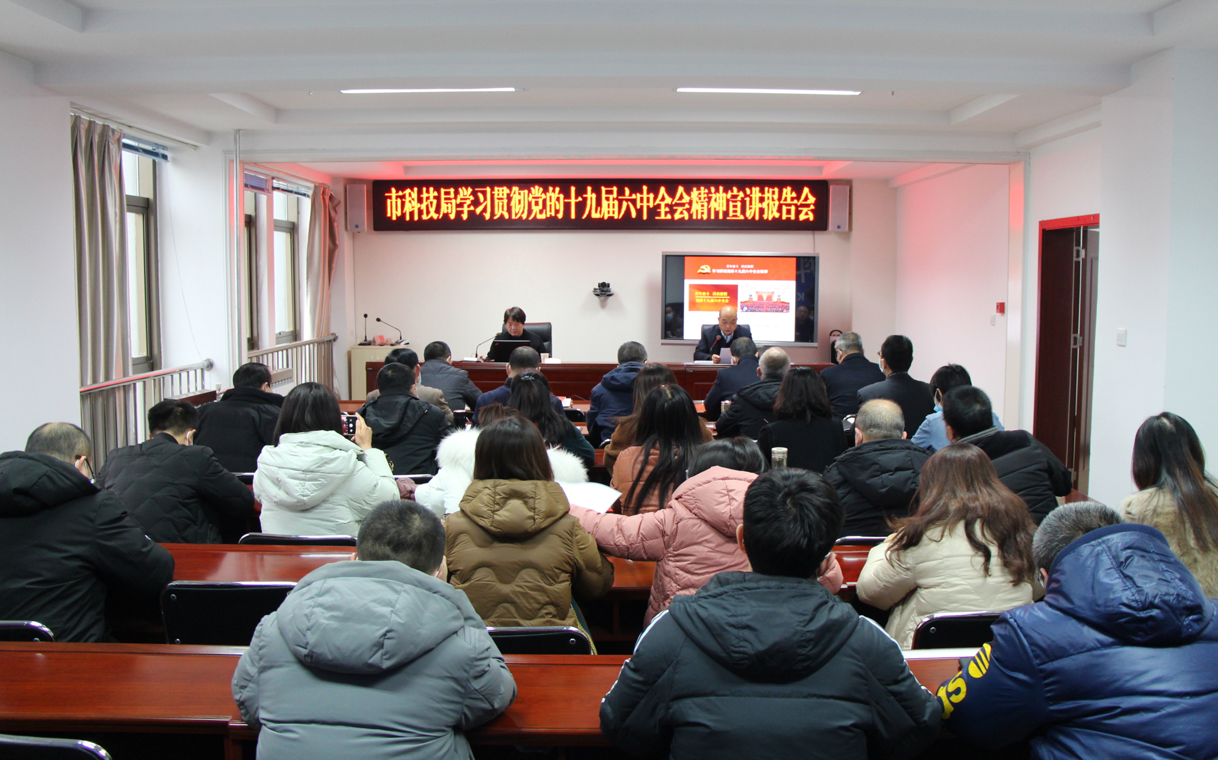 為深入學(xué)習(xí)黨的十九屆六中全會精神,12月23日,天水市科技局舉辦學(xué)習(xí)貫徹黨的十九屆六中全會精神宣講報告會,邀請市委講師團成員、天水師范學(xué)院馬克思主義學(xué)院副院長、副教授張敬花為全局干部職工作宣講報告。會議由局黨組書記、局長高翔宇主持,局領(lǐng)導(dǎo)班子成員、機關(guān)各科室和局屬單位全體干部職工參加報告會。