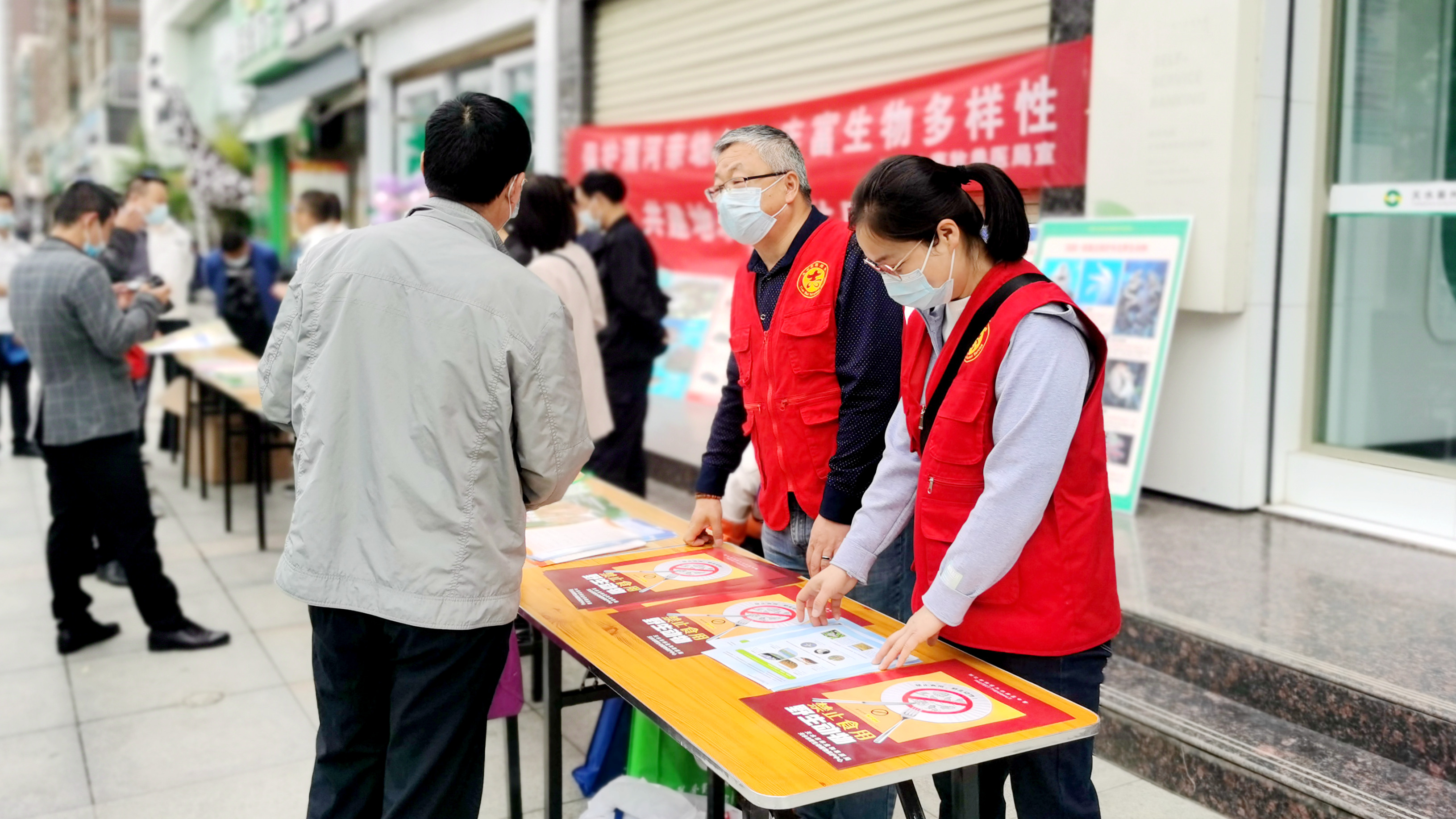 活動通過懸掛宣傳標(biāo)語、向群眾發(fā)放生物多樣性知識宣傳資料,贈送環(huán)保購物袋、圍裙、太陽帽、盒抽紙、小扇子等小禮品和展出“天水市常見禁食野生動物”、“傳統(tǒng)畜禽、特種畜禽”、“非法售賣國家重點保護(hù)野生動物案例”、“非法獵捕國家重點保護(hù)野生動物案例”、“非法采挖、銷售國家重點保護(hù)野生植物案例”等內(nèi)容宣傳展版的形式,引導(dǎo)群眾了解生物多樣性,正確認(rèn)識人與自然的關(guān)系,增強(qiáng)保護(hù)生物多樣性的意識。同時,通過志愿者對花鳥魚蟲市場相關(guān)經(jīng)營戶開展珍稀鳥、魚和樹木保護(hù)知識、法律法規(guī)的宣傳,進(jìn)一步向廣大市民普及了生物多樣性保護(hù)知識,宣傳生物多樣性理念,呼吁大家關(guān)注、參與到生物多樣性保護(hù)和環(huán)境保護(hù)工作中,用實際行動爭做新時代生物多樣性保護(hù)衛(wèi)士,全力推動美麗天水建設(shè)。