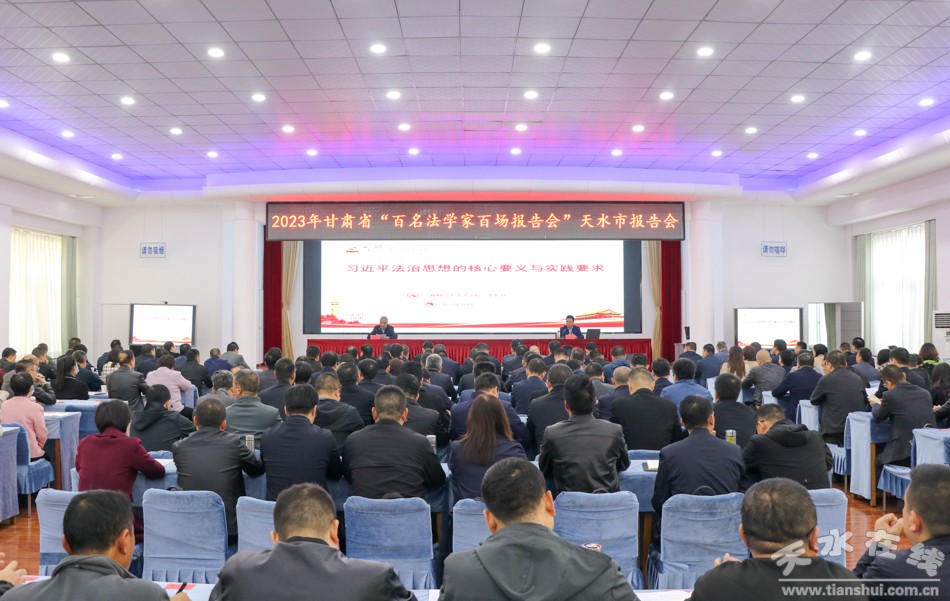 天水日?qǐng)?bào)訊【新天水·天水日?qǐng)?bào)記者李欣桐】10月27日,2023年甘肅省“百名法學(xué)家百場(chǎng)報(bào)告會(huì)”天水市報(bào)告會(huì)舉行,邀請(qǐng)?zhí)m州財(cái)經(jīng)大學(xué)法學(xué)院院長(zhǎng)李長(zhǎng)兵教授以“習(xí)近平法治思想的核心要義和實(shí)踐要求”為主題作了專題輔導(dǎo)。