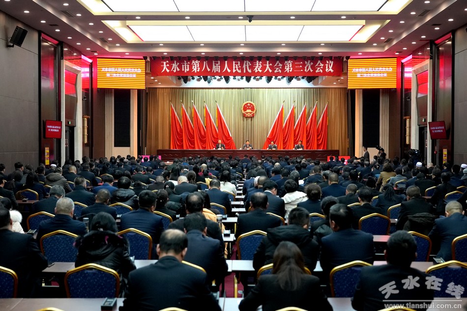 會議指出,天水市第八屆人民代表大會第三次會議的指導思想是:以習近平新時代中國特色社會主義思想為指導,全面貫徹黨的二十大精神,深刻領悟“兩個確立”的決定性意義,增強“四個意識”、堅定“四個自信”、做到“兩個維護”,堅持黨的領導、人民當家作主、依法治國有機統(tǒng)一,堅持和完善人民代表大會制度,不斷發(fā)展全過程人民民主,圍繞中心、服務大局,切實履行憲法和法律賦予的職責,圓滿完成會議各項議程,動員全市人民為譜寫中國式現(xiàn)代化天水新篇章而努力奮斗。