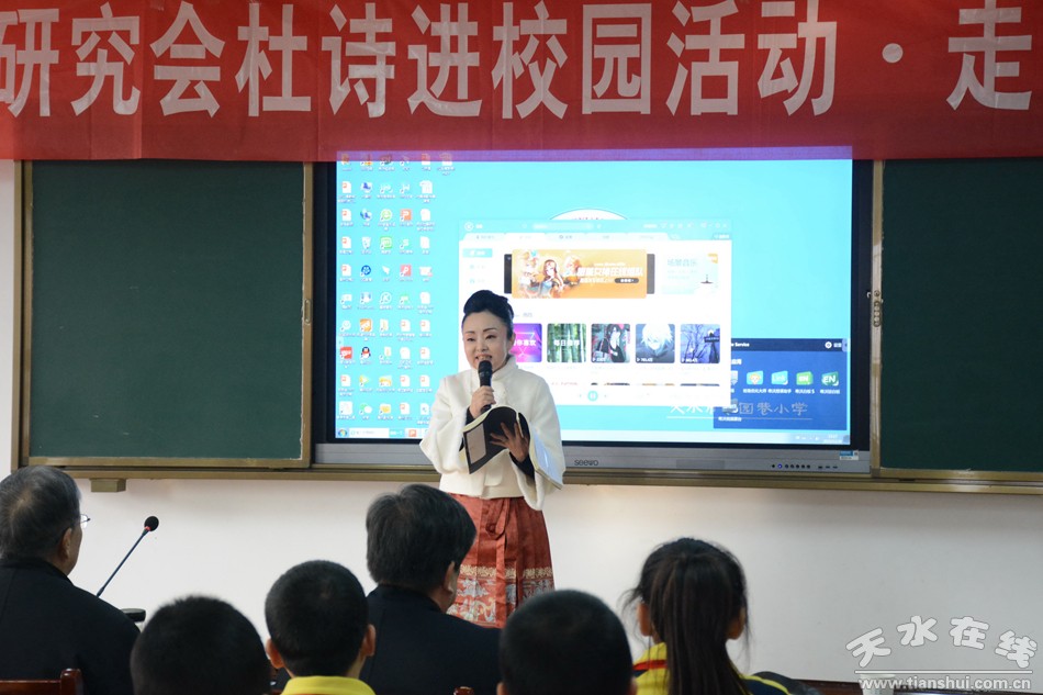 12月28日,天水杜甫研究會杜詩進校園活動來到了天水市棗園巷小學(xué)。天水杜甫研究會會長、甘肅省文史館館員聶大受等參加活動,棗園巷小學(xué)副校長魏小軍致歡迎辭。