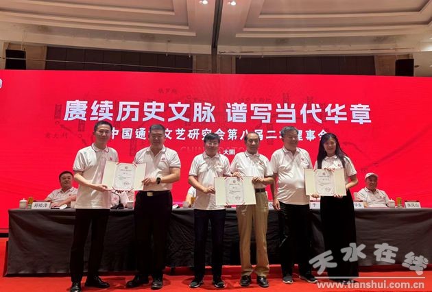 新天水訊【記者徐媛】 5月17上午,中國通俗文藝研究會(huì)首屆創(chuàng)新大會(huì)暨“一帶一路”委員會(huì)啟動(dòng)儀式在山西大同盛大召開。5月16日晚,在中國通俗文藝研究會(huì)召開的八屆二次理事大會(huì)上,天水籍學(xué)者、作家、金石書法家毛曉春當(dāng)選為副會(huì)長。