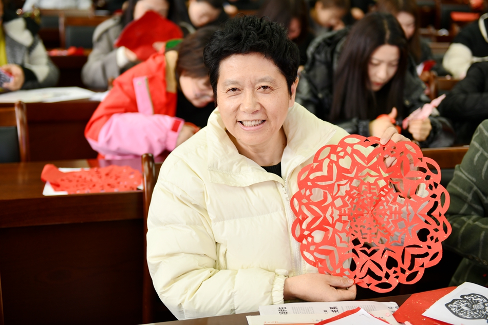 在王老師指導(dǎo)下,女同胞們紛紛動(dòng)手創(chuàng)作。她們參照提供的模板,使用剪刀和紙張,小心翼翼地折疊、裁剪。經(jīng)過(guò)一番努力,一件件精美的剪紙作品在指尖誕生;顒(dòng)最后,大家合影留念,共同記錄下了這一美好時(shí)刻。