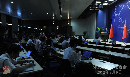 2012年7月9日,外交部發(fā)言人劉為民主持例行記者會(huì)。