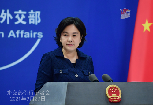 華春瑩:我的同事之前已經(jīng)表明了中方立場。我們認(rèn)為美英澳核潛艇合作具有嚴(yán)重的核擴(kuò)散風(fēng)險(xiǎn),違反《不擴(kuò)散核武器條約》精神,俄方表達(dá)的關(guān)切完全正當(dāng)、合理。
