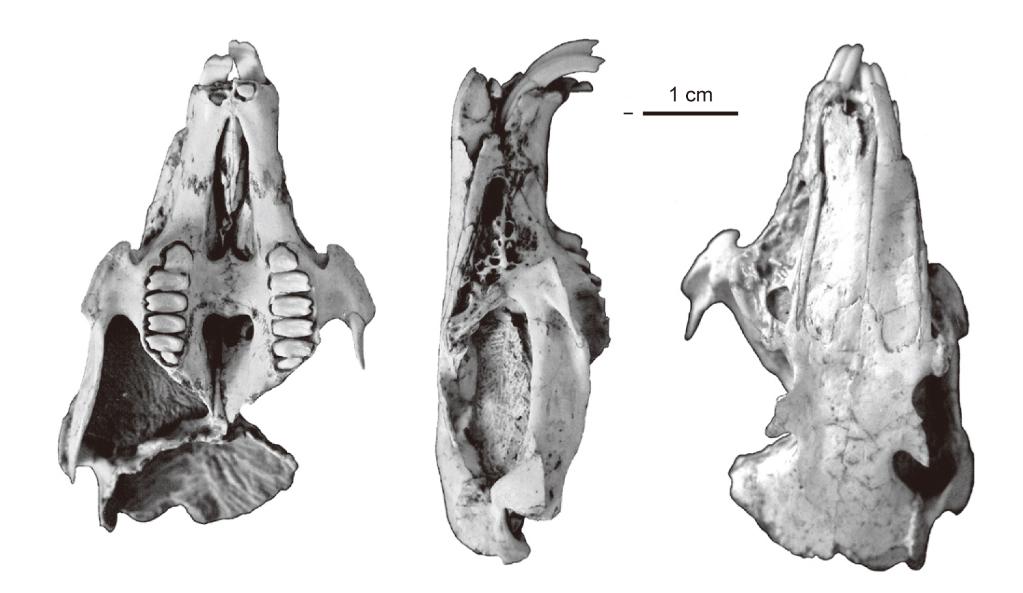 矮腳絲綢兔頭骨化石。(中科院古脊椎動(dòng)物與古人類研究所張兆群供圖)