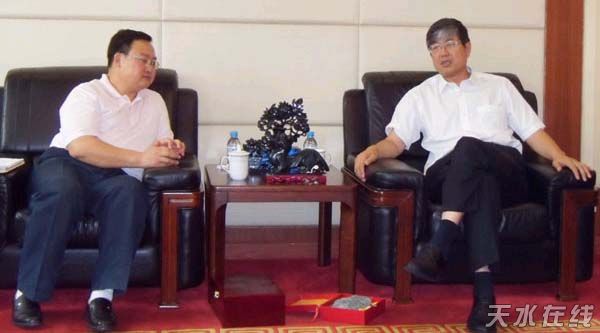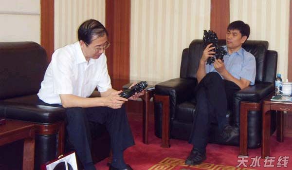 (中材集團領(lǐng)導(dǎo)在聽取劉長江縣長介紹武山礦產(chǎn)資源情況)