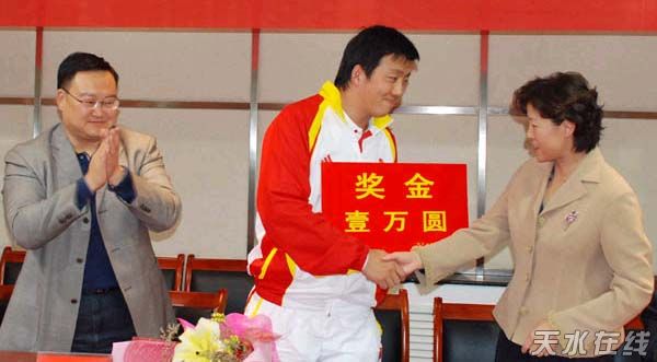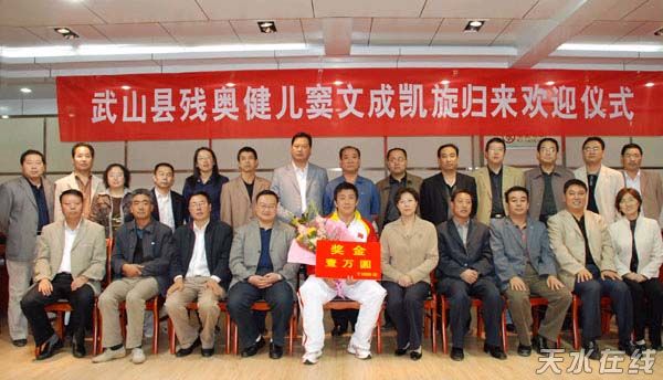 在儀式上,武山縣為了表彰竇文成在殘奧會上取得的優(yōu)異成績,為其獎勵現(xiàn)金10000元。
