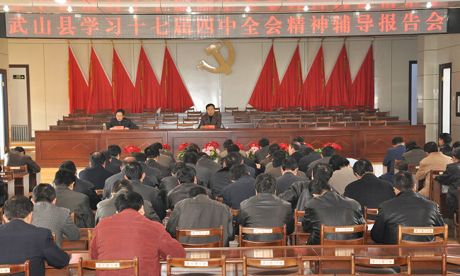 11月26日,武山縣邀請(qǐng)?zhí)焖形h校黨史黨建教研室主任、副教授蒲曉光,就黨的十七屆四中全會(huì)精神作了專題輔導(dǎo)報(bào)告。