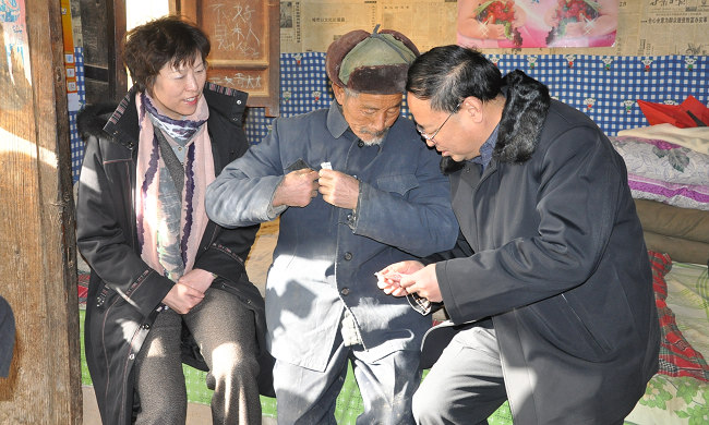 韓岱成一行每到一處,都與群眾親切交談,噓寒問暖,關(guān)切地詢問他們的生產(chǎn)、生活情況以及身體健康狀況,并一一為他們送上慰問金。