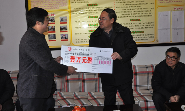 在困難企業(yè)武山磷肥廠,韓岱成認(rèn)真了解了職工生活和企業(yè)生產(chǎn)經(jīng)營情況,并送去了一萬元慰問金。韓岱成說,春節(jié)快到了,借此機(jī)會給全體職工拜個早年,祝大家新春愉快,闔家幸福。企業(yè)雖然現(xiàn)在不景氣,你們的生活也暫時(shí)遇到了一些困難,但一定要樹立信心,要相信黨委政府正在積極想辦法解決問題,大家要自立自強(qiáng),團(tuán)結(jié)起來,采取有效措施,大膽進(jìn)行技術(shù)創(chuàng)新,努力開拓產(chǎn)品市場,扭轉(zhuǎn)目前的被動局面,爭取2010年有個好的局面。