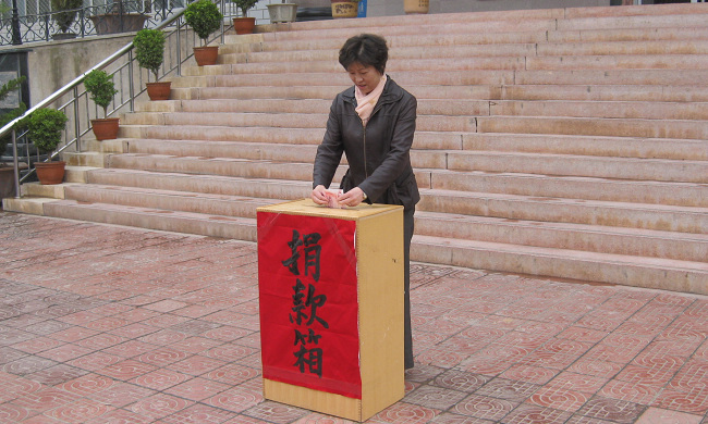 在捐款現(xiàn)場,縣四大組織在家領導帶頭向地震災區(qū)捐款,表達對災區(qū)人民的一份愛心。前來捐款的干部職工排起了長隊,他們把一份份飽含著對災區(qū)人民深情厚誼的錢款投入捐款箱,把愛心獻給遠在青海玉樹的同胞。