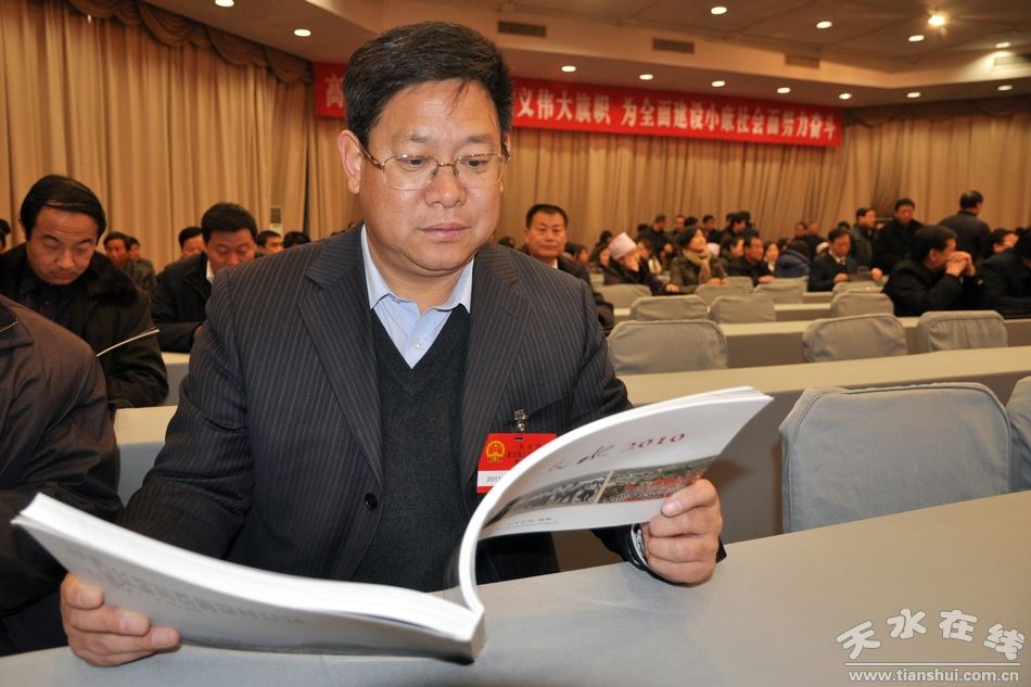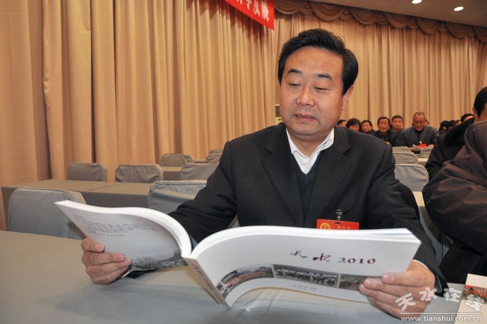圖為武山縣長(zhǎng)索鴻賓品讀《天水2010》