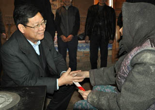 1月25日,武山縣委書記張建杰帶領(lǐng)縣委辦、民政局等單位負責(zé)人先后深入洛門鎮(zhèn)文家寺村、李堡村,看望慰問老紅軍、老黨員和困難群眾,為他們送去了慰問金、慰問品,送去了黨和政府的溫暖與關(guān)懷,并祝愿他們度過一個歡樂、祥和的春節(jié)。