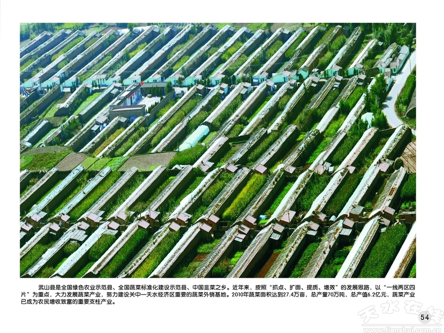 武山縣是享譽(yù)全國的蔬菜大縣,“十一五”以來,該縣不斷加快農(nóng)業(yè)產(chǎn)業(yè)結(jié)構(gòu)調(diào)整,堅(jiān)持把蔬菜產(chǎn)業(yè)作為戰(zhàn)略主導(dǎo)產(chǎn)業(yè)來培育,按照擴(kuò)面、抓點(diǎn)、提質(zhì)、增效的要求,以“一線兩區(qū)四片”為重點(diǎn),堅(jiān)持渠路配套擴(kuò)規(guī)模,強(qiáng)化科技提檔次,標(biāo)準(zhǔn)生產(chǎn)樹品牌,搞活市場增效益的要求,從示范基地建設(shè)、新品種新技術(shù)的引進(jìn)、蔬菜產(chǎn)品質(zhì)量安全、綠色蔬菜的配送、加大對外交流合作,促進(jìn)蔬菜種植區(qū)域化、生產(chǎn)標(biāo)準(zhǔn)化、品牌特色化、流通信息化。建成了6大無公害蔬菜基地和11個(gè)蔬菜科技示范園區(qū)。實(shí)現(xiàn)周年生產(chǎn),形成了以日光溫室、普通大棚、地膜覆蓋和露地蔬菜協(xié)調(diào)發(fā)展的多元化結(jié)構(gòu),有效地適應(yīng)了市場的需求,提高了菜農(nóng)的經(jīng)濟(jì)收人。胡蘿卜、洋蔥、韭菜、番茄等21種產(chǎn)品已被農(nóng)業(yè)部認(rèn)定為綠色食品A級產(chǎn)品。形成了以洛門、城關(guān)蔬菜批發(fā)市場為中心,馬力、灘歌、鴛鴦、四門等鄉(xiāng)鎮(zhèn)農(nóng)貿(mào)市場為依托,村頭、路口、微型市場為基礎(chǔ)的流通體系,形成了“萬人種蔬菜,千人搞運(yùn)銷”的蔬菜產(chǎn)銷格局。并與全國24個(gè)省市和地區(qū)建立了穩(wěn)定的供銷關(guān)系,蔬菜產(chǎn)品遠(yuǎn)銷陜西、青海、寧夏、新疆、廣東、湖南等省市和地區(qū),成為西北最大的蔬菜集散地。目前,全縣蔬菜種植面積達(dá)27.4萬畝,實(shí)現(xiàn)產(chǎn)值6.8億元。2010年武山縣被農(nóng)業(yè)部列為首批全國設(shè)施蔬菜標(biāo)準(zhǔn)園創(chuàng)建縣、全省蔬菜標(biāo)準(zhǔn)園創(chuàng)建重點(diǎn)縣。