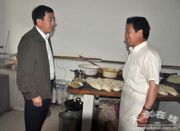 (在榆盤鄉(xiāng)政府職工食堂與廚師交談)