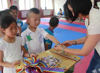 (為資助女童發(fā)放學(xué)習(xí)用品)