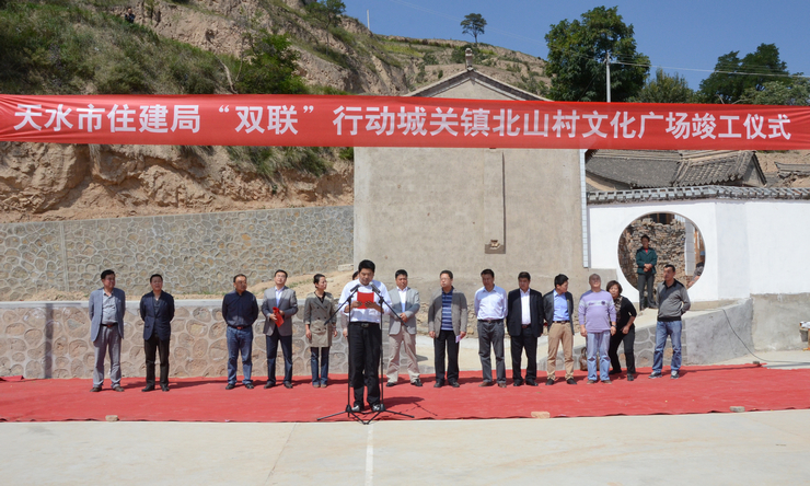 9月19日,天水市住建局“雙聯(lián)”行動幫建城關(guān)鎮(zhèn)北山村群眾文化廣場竣工儀式在城關(guān)鎮(zhèn)北山村隆重舉行。市住建局副局長張長平、吳健、馬延廣,武山縣委副書記蔣小麗,縣委常委、常務(wù)副縣長康志鋒,縣委常委、城關(guān)鎮(zhèn)黨委書記柳選植出席竣工儀式。竣工儀式由城關(guān)鎮(zhèn)黨委副書記、鎮(zhèn)長王東明主持。